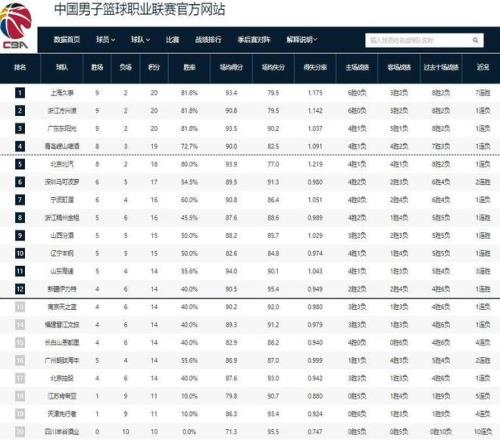 CBA最新排名!北京跌出前四,612混战,山东浙江连胜逐渐稳固!