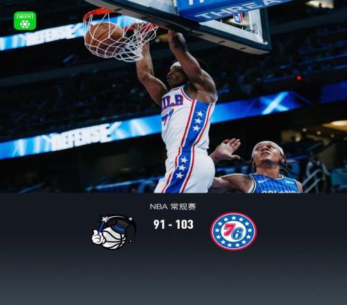 第四节魔术贝恩拿下6分,76人保罗-乔治拿下10分,最终魔术91-103不敌76人