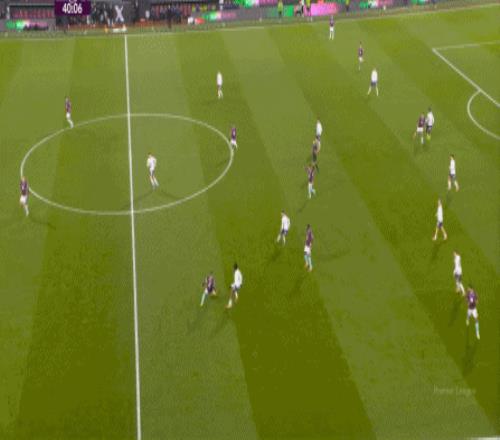 而且,攻转守的逻辑也重新发生了变化,比如这次谢什科没有接好球,立刻被伯恩利发展到边路,于是你可以看到,中场、右中卫和右后卫需要形成三人之间的轮转: