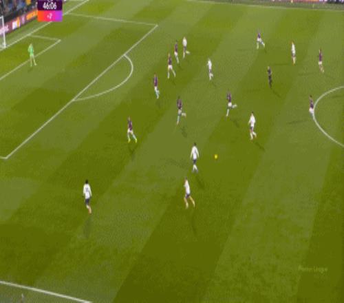 真正打开了空间的进攻,直至第31分钟才出现,库尼亚先拉边,再进中路,就和布鲁诺有了联系的可能性: