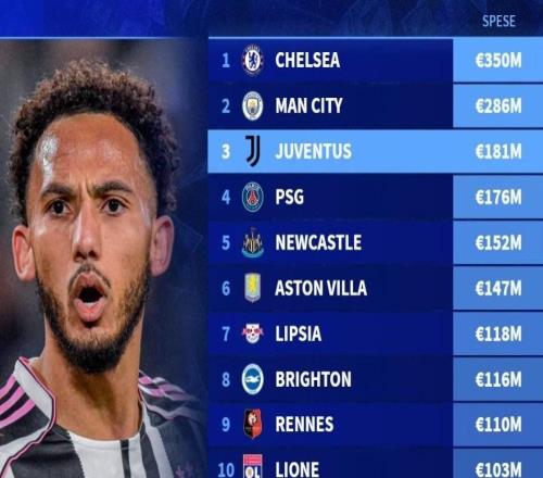 北京时间1月7日,德转列出了过去5年冬窗引援支出排行榜,切尔西3.5亿欧元高居第一,曼城2.86亿欧元第二,尤文图斯1....