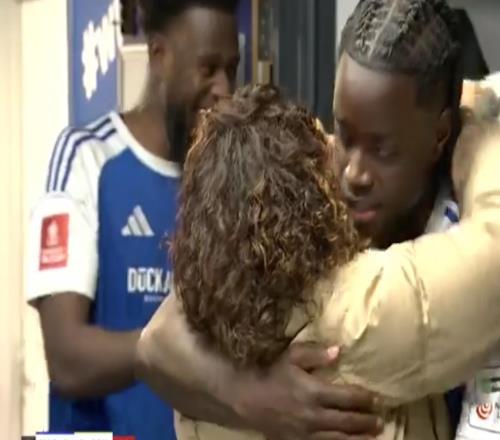 有情有义,爆冷晋级后麦克斯菲尔德全队与离世球员的父母一同庆祝
