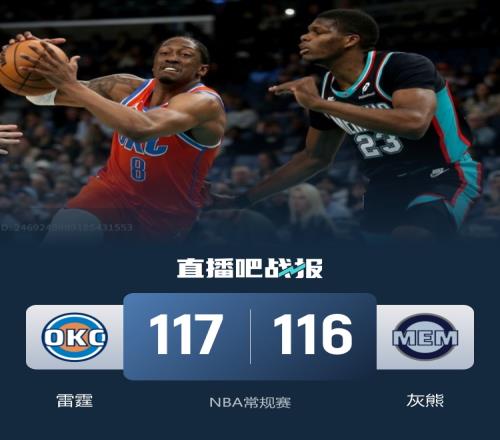雷霆21分逆转灰熊!SGA&霍姆格伦缺阵杰伦威26+10JJJ23+7